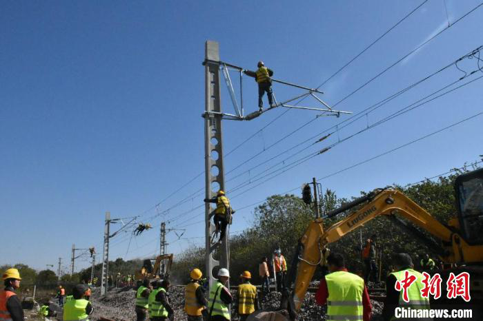 據(jù)了解,由中鐵十局承建的引江濟(jì)淮工程(安徽段)引起寧西、滬蓉高鐵四電改建工程,主要內(nèi)容包括寧西、滬蓉高鐵改建工程涉及的通信、信號、信息及災(zāi)害監(jiān)測,電力及電力牽引供電專業(yè)施工。工程工期長,施工任務(wù)重、安全風(fēng)險大,共需要進(jìn)行5次大的施工撥接。此次撥接為該工程第4次撥接施工,主要是因為由東向西的寧西鐵路跨越引江濟(jì)淮主河道,成為河道向北開挖的“攔路虎”,因此要在原有寧西下行鐵路的南側(cè)修建一條臨時便線,為引江濟(jì)淮工程騰出施工作業(yè)面。